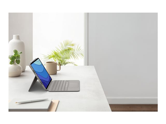 Logitech Combo Touch - Näppäimistö- ja kalvokotelo - sekä kosketuslevy - taustavalaistu - Apple Smart connector - QWERTY - espanjalainen - hiekka malleihin Apple 11-inch iPad Pro (1. laitesukupolvi, 2. sukupolvi, 3. sukupolvi)