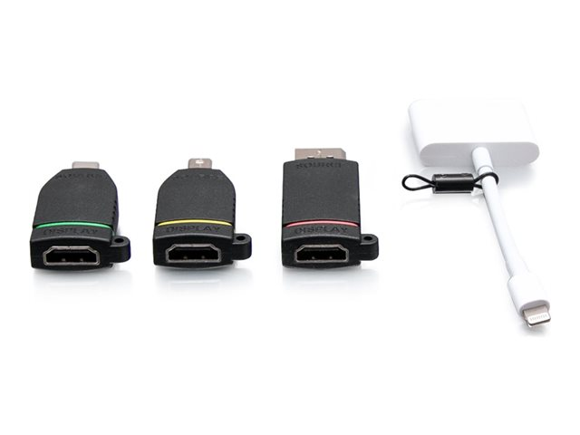C2G Retractable Universal Mount 4K HDMI Adapter Ring with Color Coded Mini DisplayPort, DisplayPort, USB-C, and Lightning - Videosovitinpakkaus - musta - 4K-tuki C2G29890