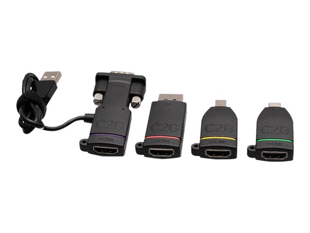 C2G Universal 4K HDMI Adapter Ring with Mini DisplayPort, DisplayPort, USB C, Lightning, and VGA - M/F - Videosovitinpakkaus - musta - 4K-tuki C2G29888