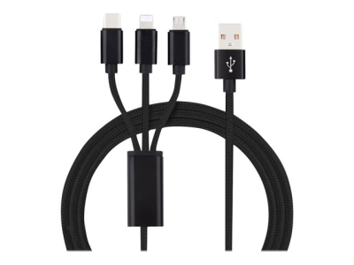 Insmat 3-IN-1 - Salamakaapeli - USB uros to Micro-USB Type B, Lightning, 24 pin USB-C uros - 1.2 m - musta 133-1003